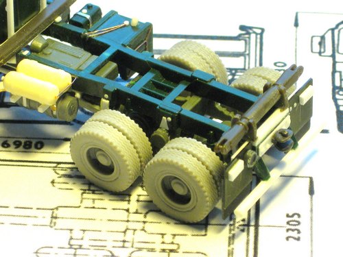 Komplette Überarbeitung des Igra Modells. Resin Kabine, Photoätzteile und Räder von Hauler. Eigenbau des Rohrrahmens des Fahrgestells mit eigenen Resin Abgüssen und Evergreen sheet. Eigenbau des Kipper-Aufbaus unter Verwendung von Teilen des Trident ÖAF.