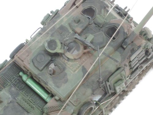 Scratchbau der Innenausstattung, Entfernen aller Aussendetails – und Ersatz. PE Kettenpolster von RN. Weathering mit Ölfarben und Pastellkreiden. Decals von TL, Waffen von Roco Minitanks.