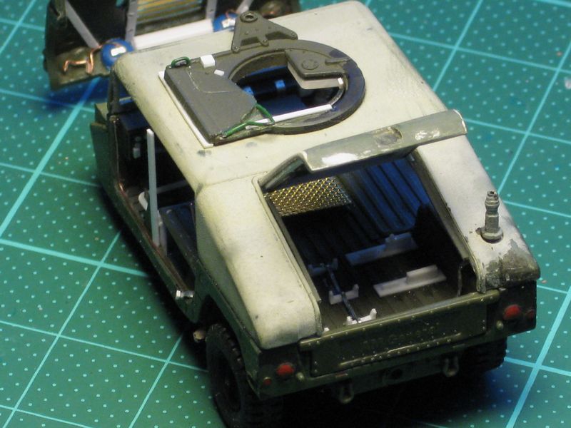 Kompletter Umbau des Roco Modells. Alle Türen geöffnet – Eigenbau des Motors und der Inneneinrichtung. Nato- Dreifarbtarnfarbe mittels Airbrush. Weathering mit Pastellkreiden und Pigmenten. Decals von TL.