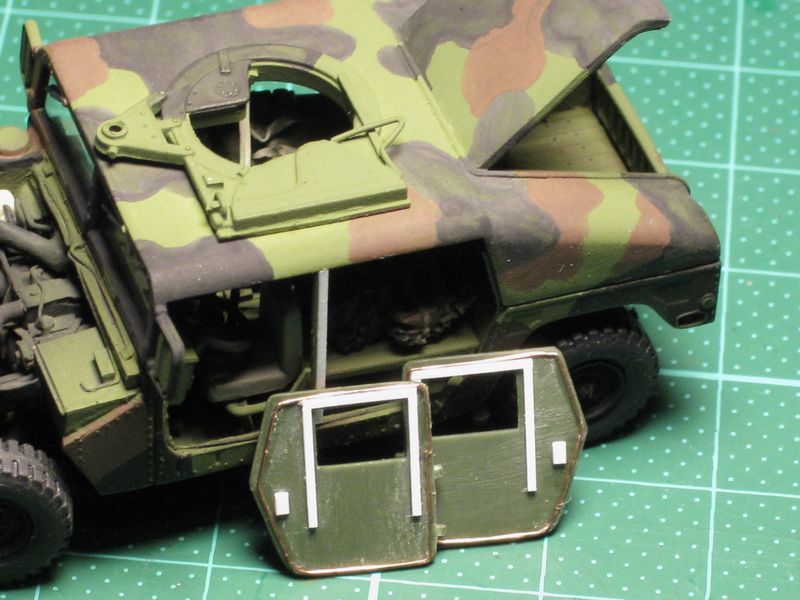 Kompletter Umbau des Roco Modells. Alle Türen geöffnet – Eigenbau des Motors und der Inneneinrichtung. Nato- Dreifarbtarnfarbe mittels Airbrush. Weathering mit Pastellkreiden und Pigmenten. Decals von TL.