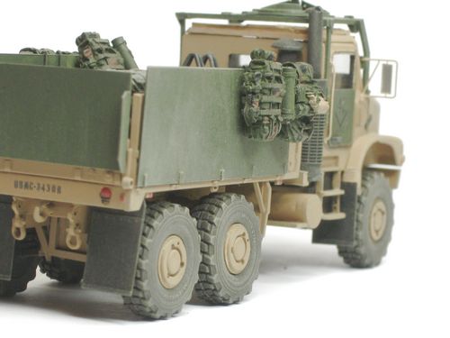 Hervorragend detaillierter Bausatz. Pritsche von Roco Minitanks. Beladung von Roco und Arsenal M. MG Lafette im Eigenbau. Einige Änderungen am Modell vorgenommen. Wüstenlackierung mittels airbrush.