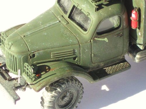 Lackierung mit Airbrush Tamiya XF-65 und Revell Matt 46. Chipping in Schwammtechnik mit Revell Matt 57. Washing mit braunen und rostfarbenen Ölfarben von Abteilung 502 (Abt130 und Abt060). Betriebsverschmutzung mit MIG 415 (light European Earth).